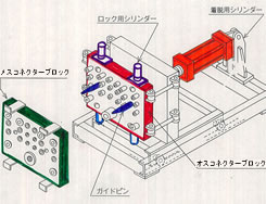接続した時の流体反力によるマルチユニット間の分離する力を受けるロック装置を構成します。 |